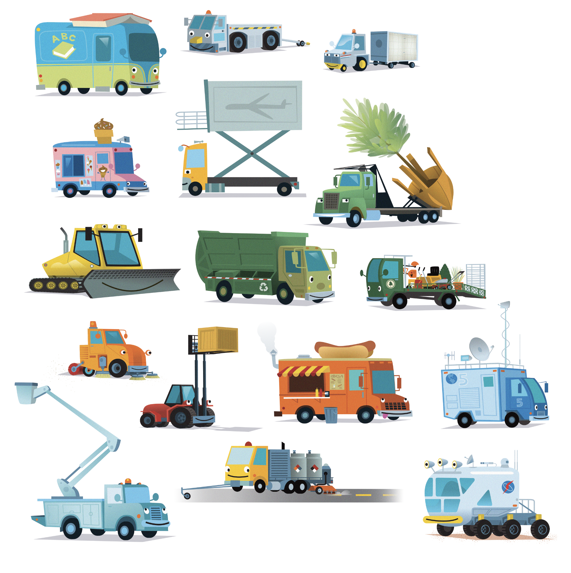 First dinosaurs now trucks. These books have been fun. Once again it was written by my good friend April. The books are large format chunky books. Great for little hands. We are thinking of these as non-fiction. There was a lot of internal debate about whether I could add the faces to the vehicles and stay in that non-fiction category. Iām glad it was decided that it was acceptable.